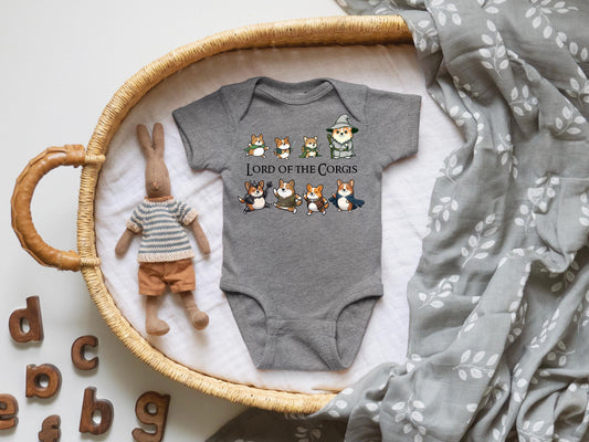 Lord of the Corgis Bodysuit Nerdy Baby Bodysuit Baby Shower Bodysuit Infant Clothing Corgi Bookish LOTR Baby Dog Lover