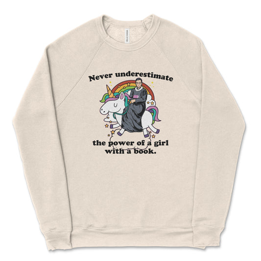 Never Underestimate a Girl With a Book RGB Unicorn Sweatshirt