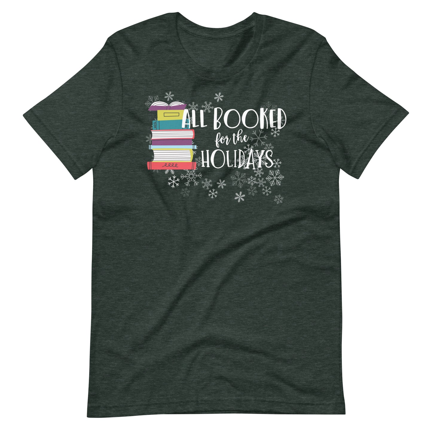 Whether you're gifting it to a fellow book enthusiast or treating yourself to some festive flair, the "All Booked For the Holidays Christmas Short Sleeve T-shirt" is a stylish way to spread the love for literature and share the festive vibes. Let the world know that you're "All Booked For the Holidays" and celebrate the joys of the Christmas holiday in style!