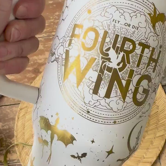 Embrace the power of the Fourth Wing with this sleek Fly or Die tumbler featuring a captivating Fourth Wing design. Perfect for showing off your love for all things fantasy! Add this unique fantasy book Stanley merch to your collection today.