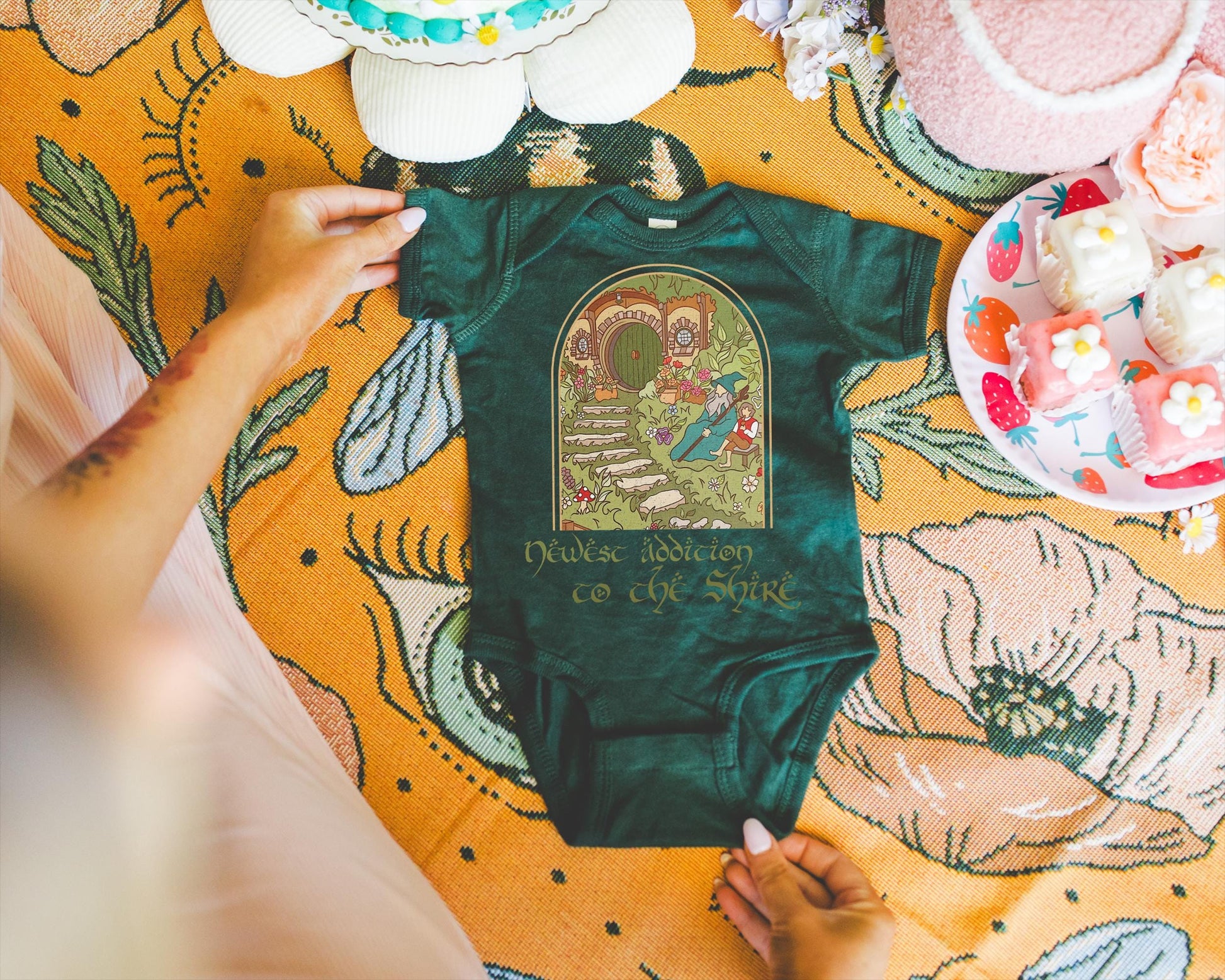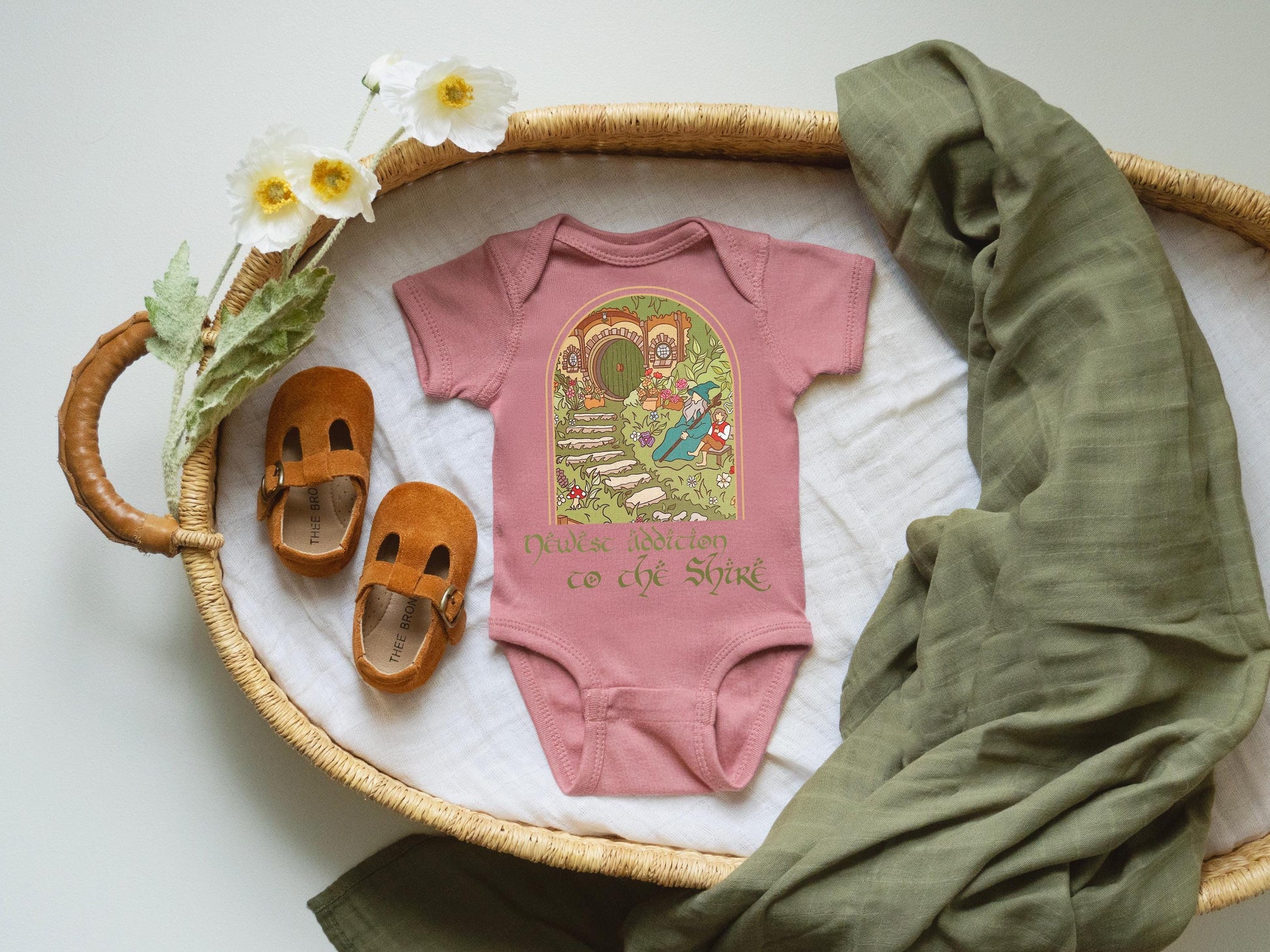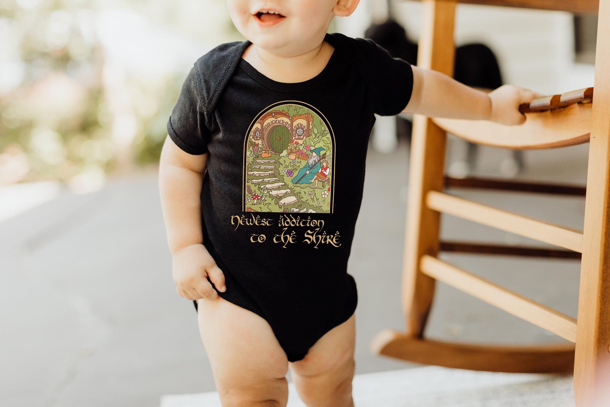This hobbit inspired outfit doubles as a cozy newborn outfit or a stylish shire baby clothing piece perfect for playtime, layering, or naps. It also makes an excellent newborn gift idea or baby shower present that Tolkien fans will cherish.