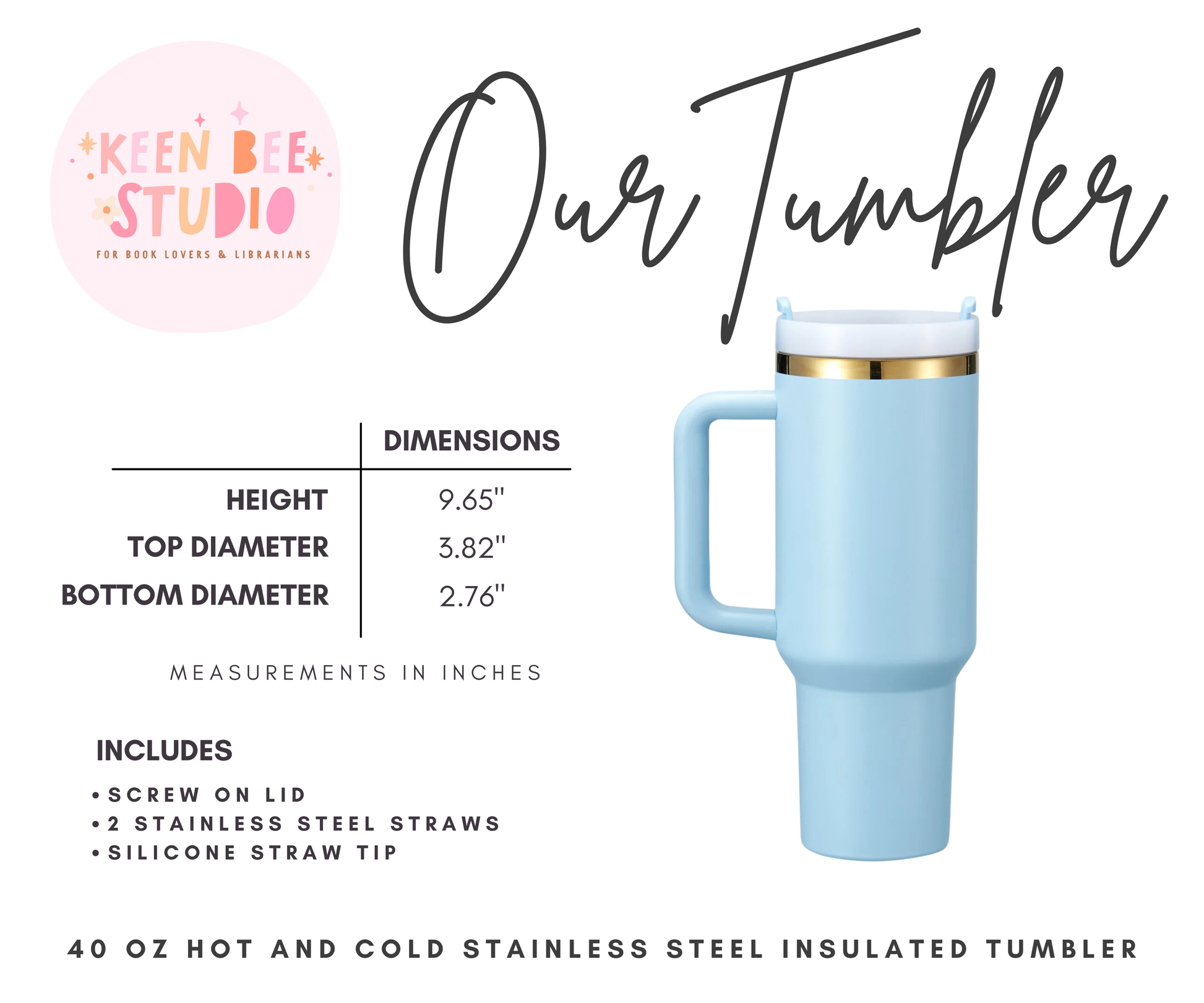 Each of our laser engraved tumblers is carefully crafted by hand in our "Keen Bee Studio Backyard Shop" in Denton, Texas. Using precision engraving techniques, we etch every design with care, ensuring a high-quality finish that won’t fade or peel. As book lovers and fantasy fans ourselves, we take pride in creating unique, durable drinkware that fellow readers will love. Whether you’re sipping coffee during an early morning read or staying hydrated on an all-day fantasy binge, our handcrafted tumblers are made to bring a little extra magic to your everyday routine.