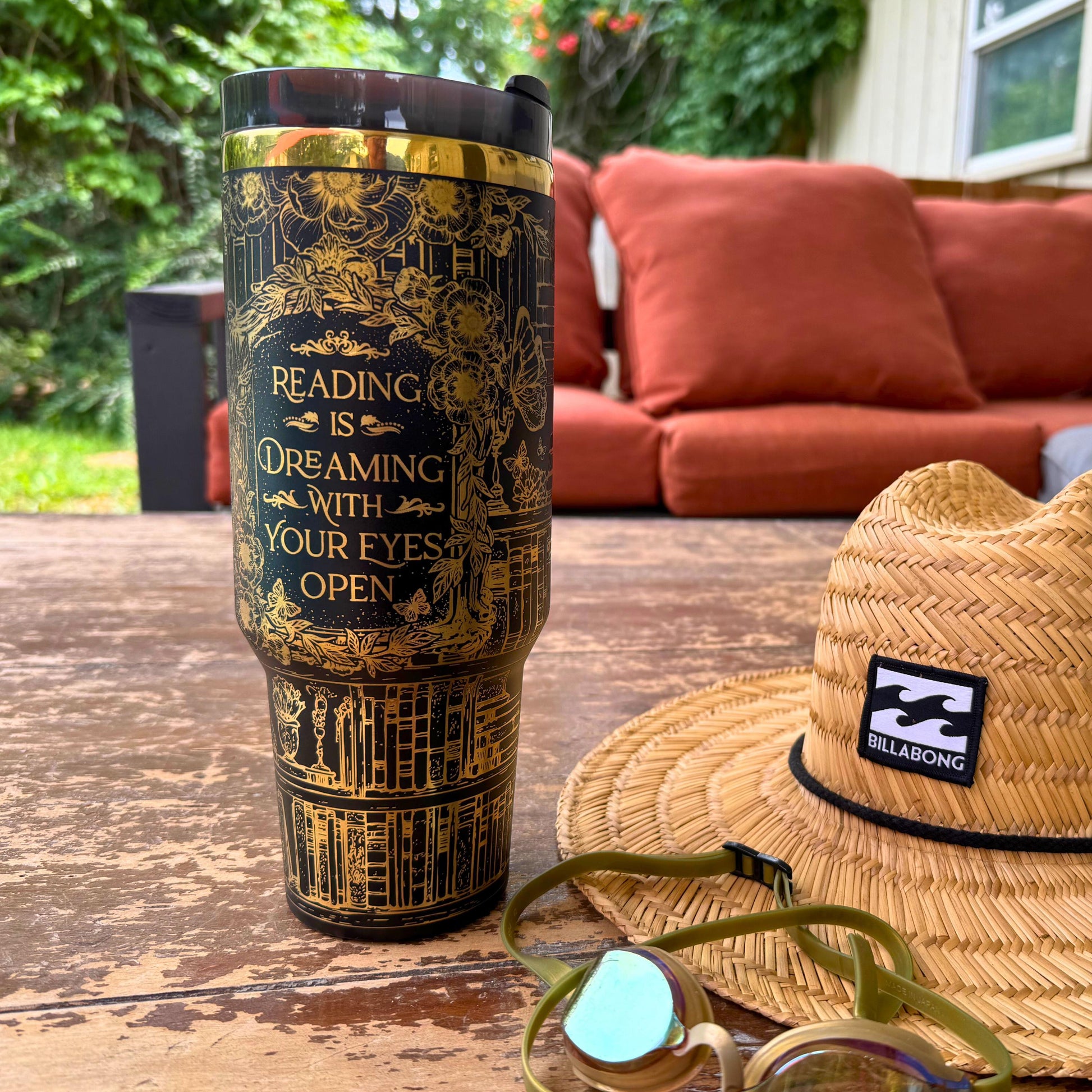 Reading is Dreaming With Your Eyes Open Book Lover Engraved Tumbler
