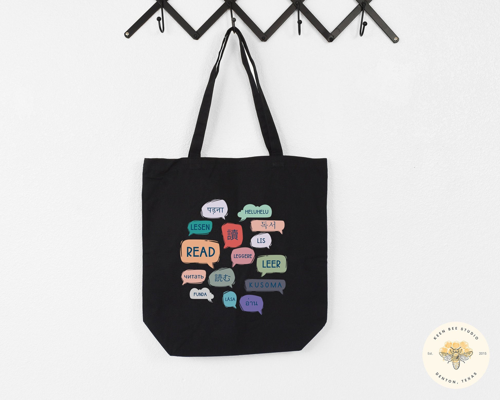 Reading Languages Canvas Tote Bag: Bookish Gift